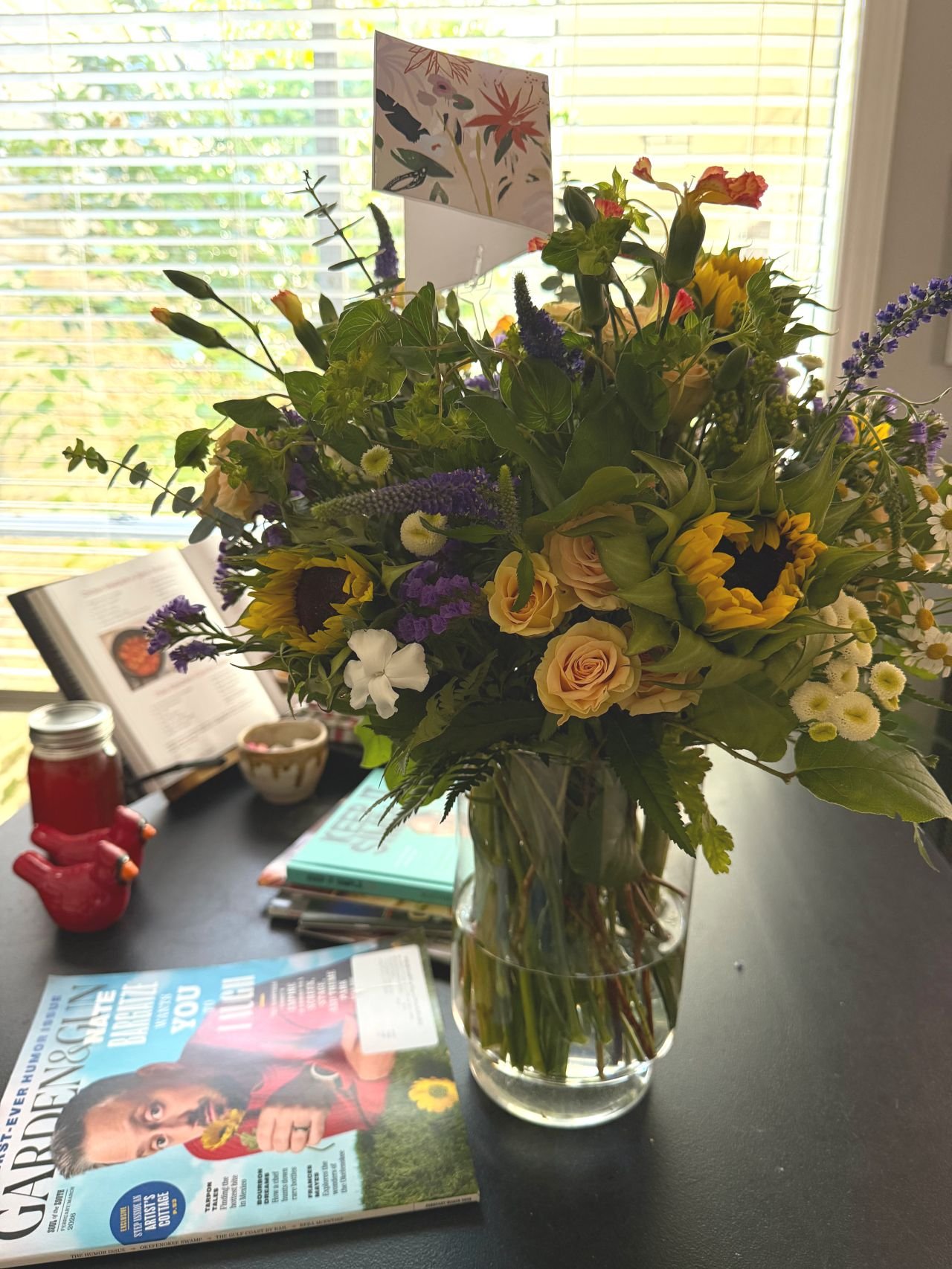 Worked with them on the re-release of my regional interest title Texas Then and Now. On pub day they sent me this beautiful bouquet of flowers! They really brightened up the room, especially since the freeze this past weekend killed so many of our big tropical flowers.