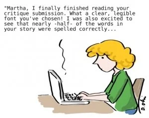 For the right kind of fiction writer, critique groups can be so great. You’re probably familiar with the concept: everyone brings a piece of work such as a chapter from a novel you’re writing, a bit of a short story, a poem, etc. Then everyone reads the work you brought, going around the room giving you feedback until you run from the room crying and having zero self-worth. It’s great fun. And these days tools like Teams and Zoom mean you’re not just limited to groups in your city—you can be humiliated by people from out of town as well.